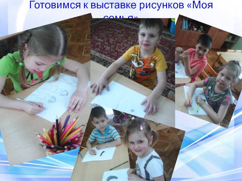 Слайд 17Готовимся к выставке рисунков «Моя семья»