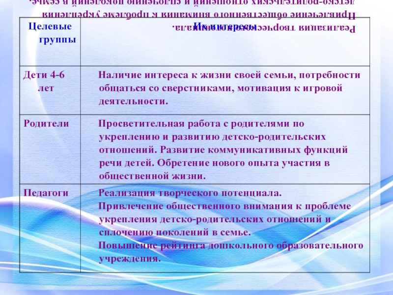 к проблеме укрепления детско-родительских отношений и сплочению поколений в семье.