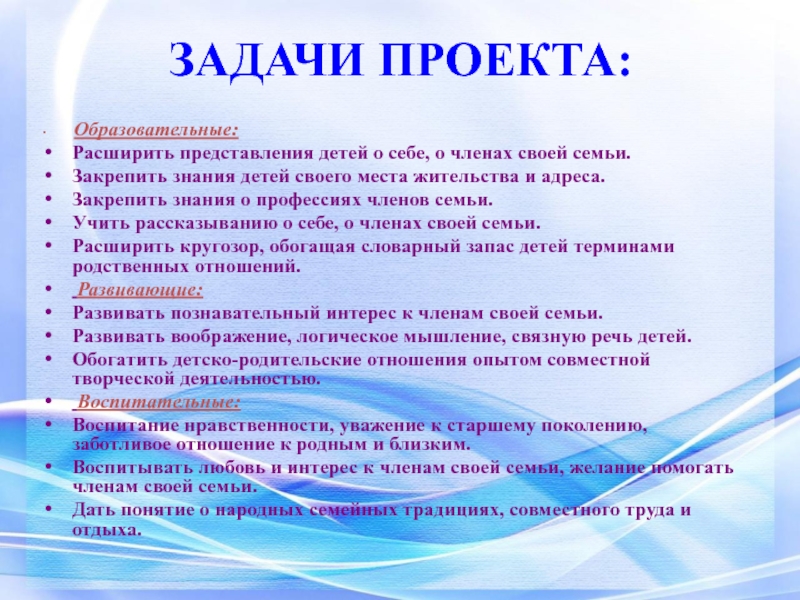 Слайд 6ЗАДАЧИ ПРОЕКТА: