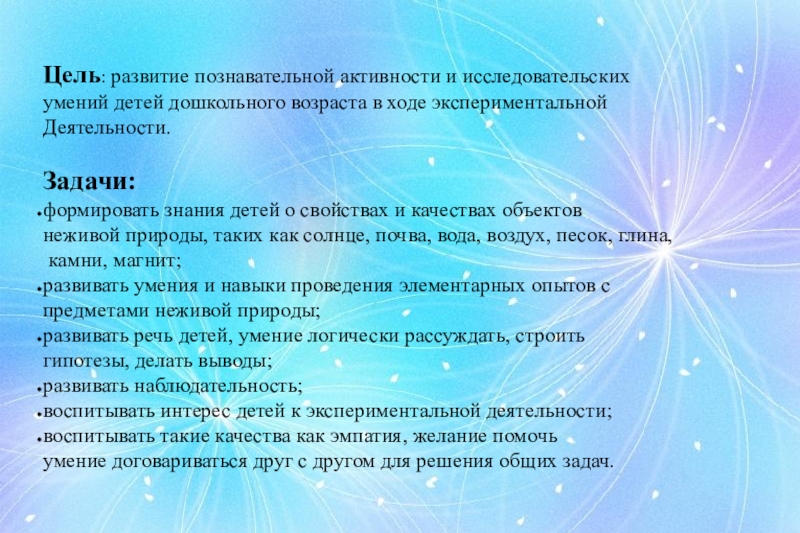 Слайд 3Цель: развитие познавательной активности и исследовательских