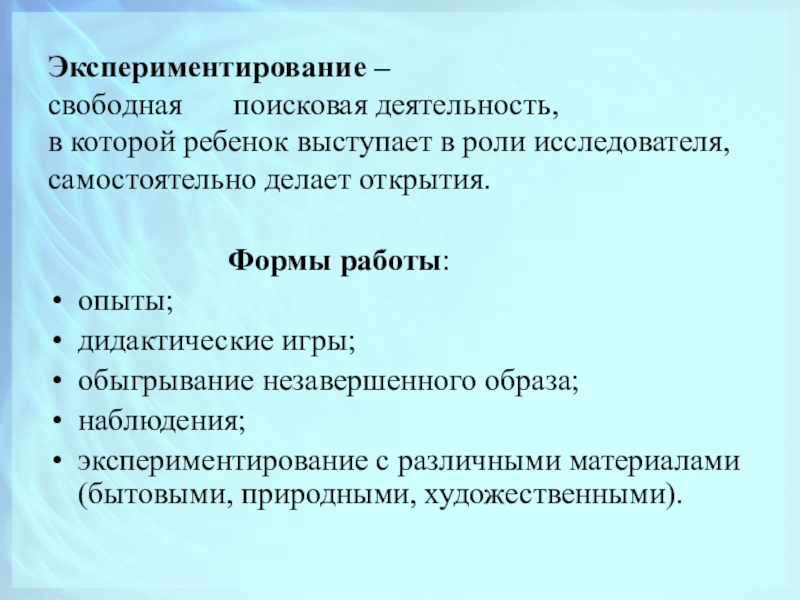 экспериментирование с различными материалами (бытовыми, природными, художественными).