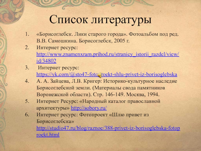 Тема: «Лики старого города»
