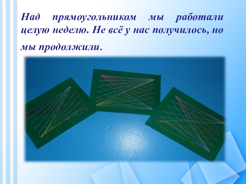 Слайд 22Над прямоугольником мы работали целую неделю. Не всё у нас получилось,