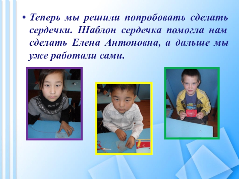 Слайд 23Теперь мы решили попробовать сделать сердечки. Шаблон сердечка помогла нам сделать