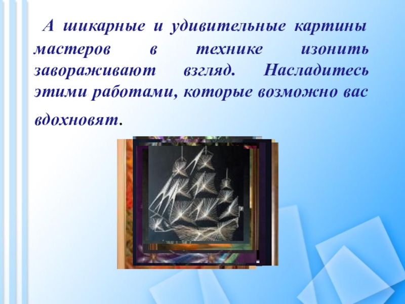 Слайд 19 А шикарные и удивительные картины мастеров в технике изонить завораживают
