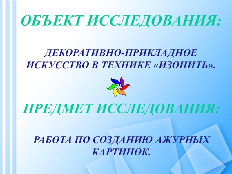 ажурных картинок в технике «изонить» и как осваивали это декоративно-прикладное искусство. Целью нашего исследования было желание изучить технику «изонить» и самим попробовать создать ажурные картинки. Мы поставили себе задачи. Выдвинули гипотезу. И пришли к своим результатам, о которых и расскажем вам.