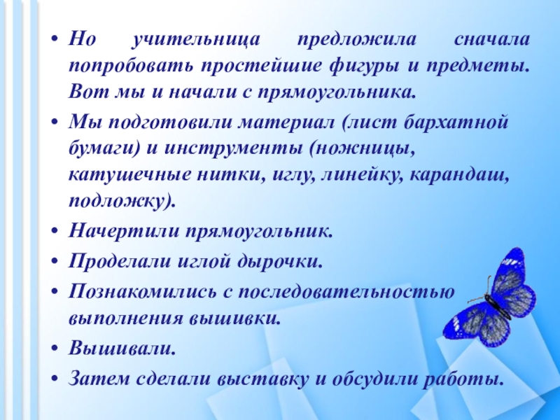Но учительница предложила сначала попробовать простейшие фигуры и предметы. Вот мы