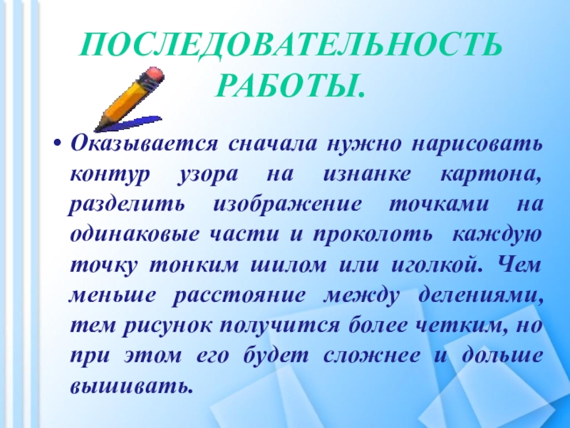 изображение точками на одинаковые части и проколоть каждую точку тонким шилом или иголкой. Чем меньше расстояние между делениями, тем рисунок получится более четким, но при этом его будет сложнее и дольше вышивать.