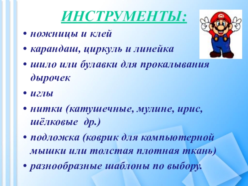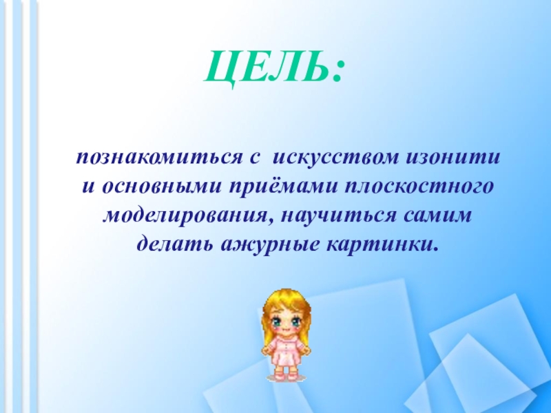 познакомиться с искусством изонити и основными приёмами плоскостного моделирования, научиться