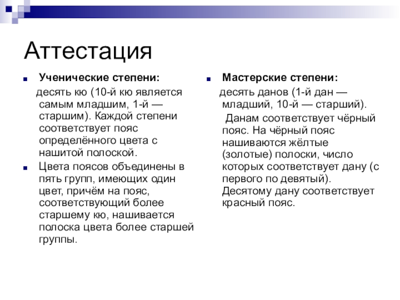 десять данов (1-й дан — младший, 10-й — старший).