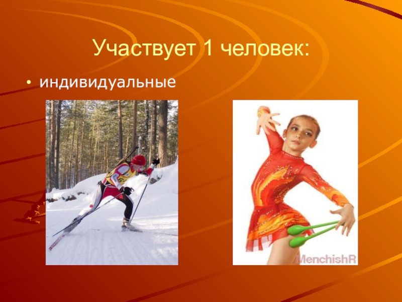 Участвует 1 человек:индивидуальные