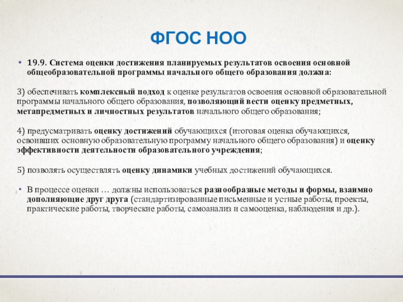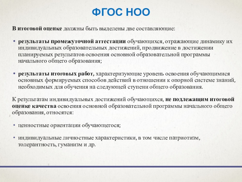 Предметом итоговой оценки освоения обучающимися основной образовательной программы начального общего образования должно быть достижение предметных и метапредметных результатов освоения основной образовательной программы начального общего образования, необходимых для продолжения образования.