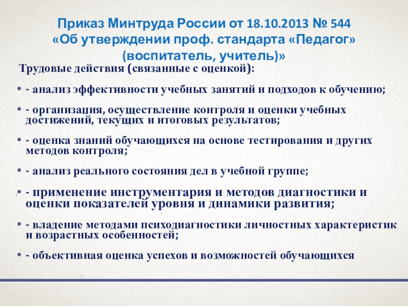 «Об утверждении проф. стандарта «Педагог» (воспитатель, учитель)»
