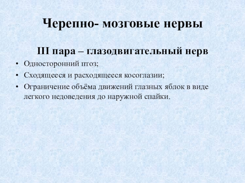 объёма движений глазных яблок в виде легкого недоведения до наружной спайки.