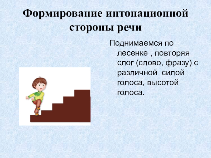Слайд 65Формирование интонационной стороны речи. Развитие физических характеристик голоса.