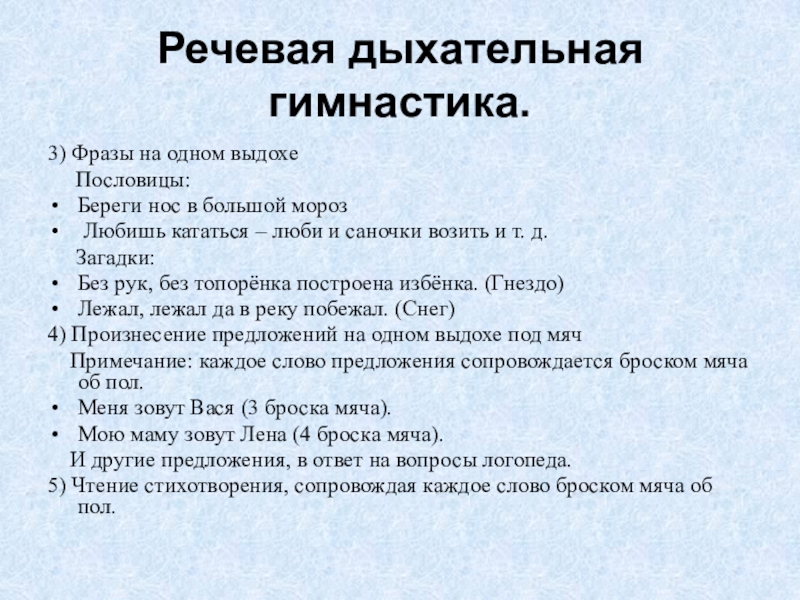 5) Чтение стихотворения, сопровождая каждое слово броском мяча об пол.