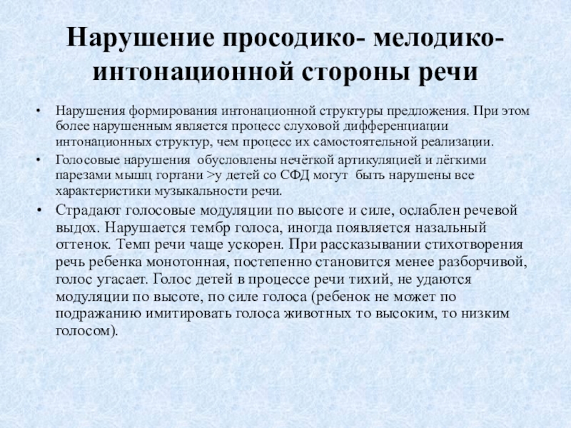 фонетического и просодического компонентов речевой функциональной системы и возникающая вследствие невыраженного микроорганического поражения головного мозга (Л.В. Лопатина).