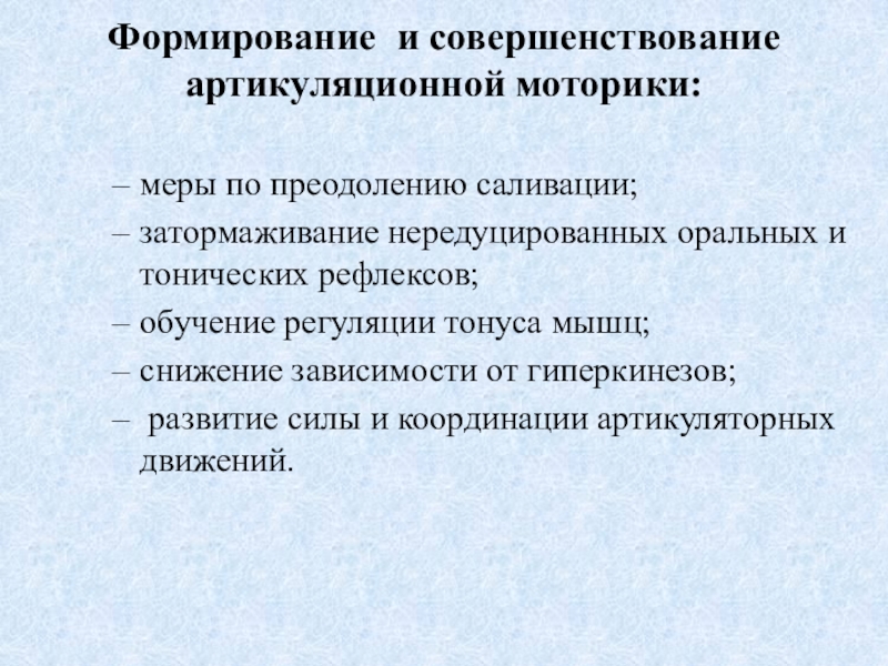 лет. Все дети, с симптоматикой соответствующей стертой дизартрии, должны направляться на консультацию к неврологу для уточнения или подтверждения диагноза, а также для назначения адекватного медикаментозного лечения и обследования. Таким образом, при стертой дизартрии методика коррекционной работы должна быть комплексной и включать: