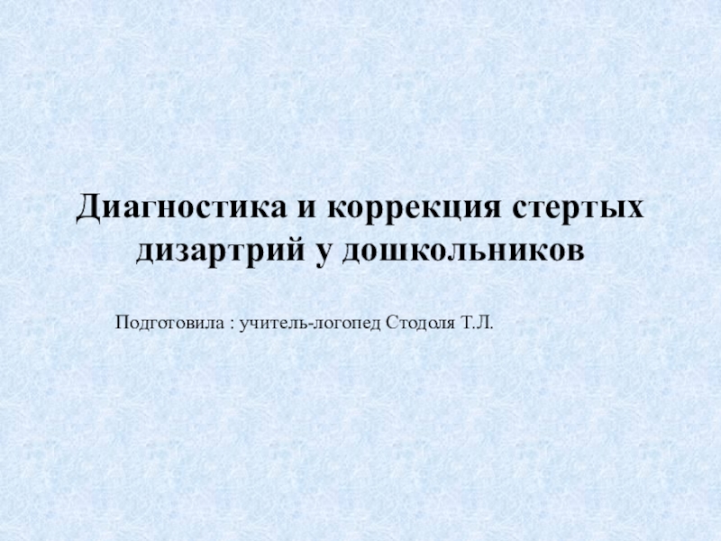 Слайд 1Диагностика и коррекция стертых дизартрий у дошкольников