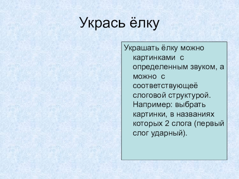 соответствующеё слоговой структурой. Например: выбрать картинки, в названиях которых 2 слога (первый слог ударный).