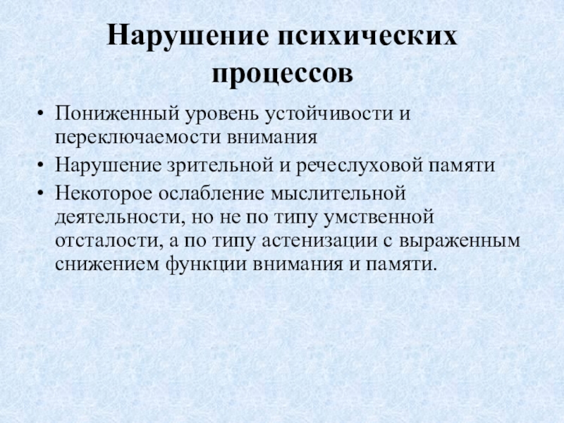 Нет тяжёлых расстройств. В некоторых случаях отмечаются :