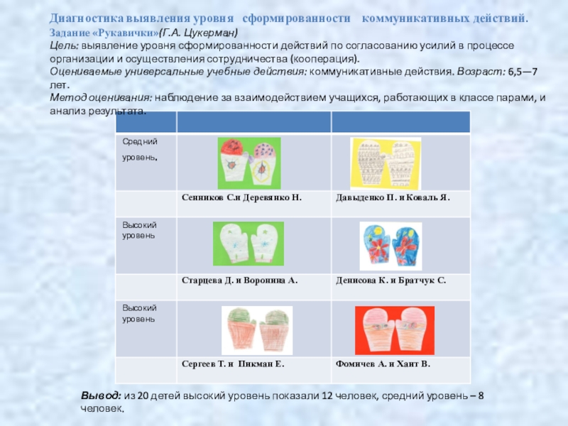 Диагностика выявления уровня сформированности коммуникативных действий.