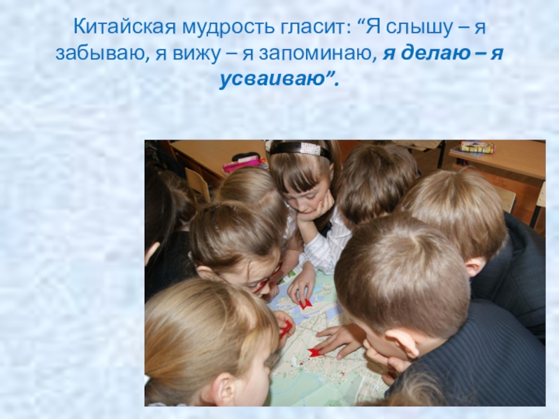 Слайд 17Китайская мудрость гласит: “Я слышу – я забываю, я вижу –
