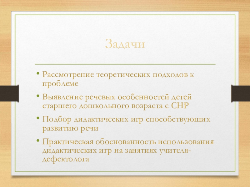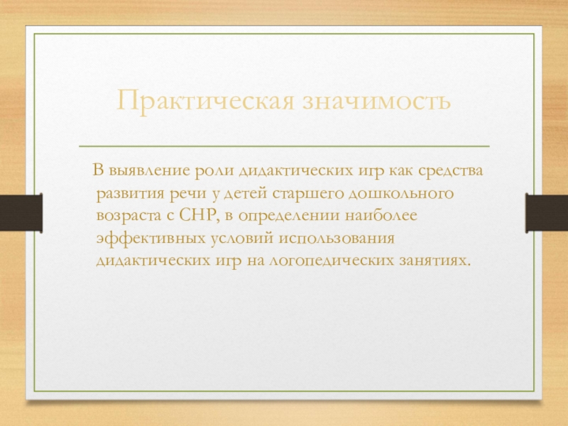 речи у детей старшего дошкольного возраста с СНР, в определении наиболее эффективных условий использования дидактических игр на логопедических занятиях.