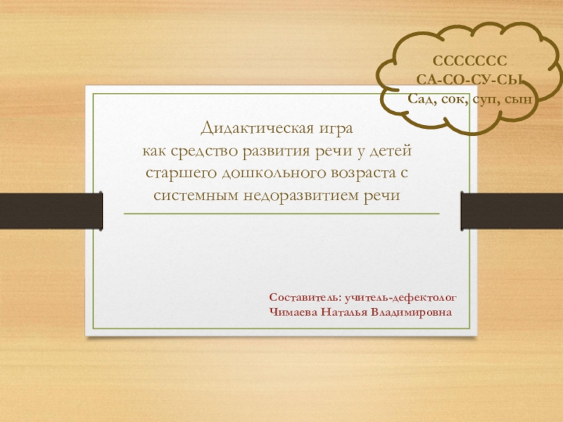 Предмет: особенности использования дидактических игр для преодоления недостатков в речевом развитии детей данной группы