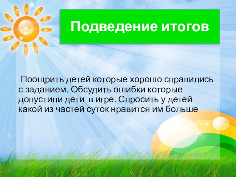 ошибки которые допустили дети в игре. Спросить у детей какой из частей суток нравится им больше