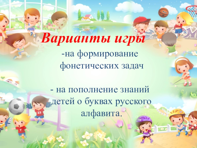 Варианты игрына формирование фонетических задач на пополнение знаний детей о буквах русского алфавита.