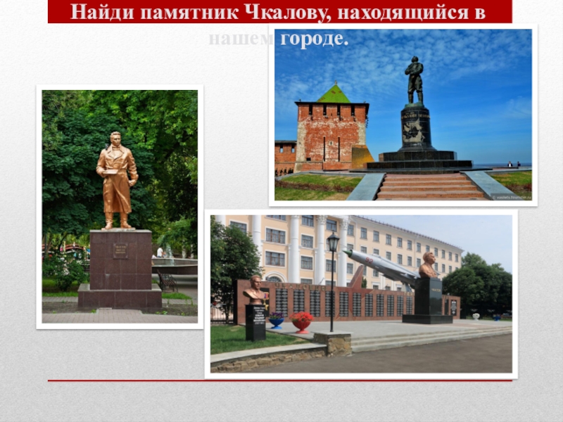 Слайд 7Найди памятник Чкалову, находящийся в нашем городе.