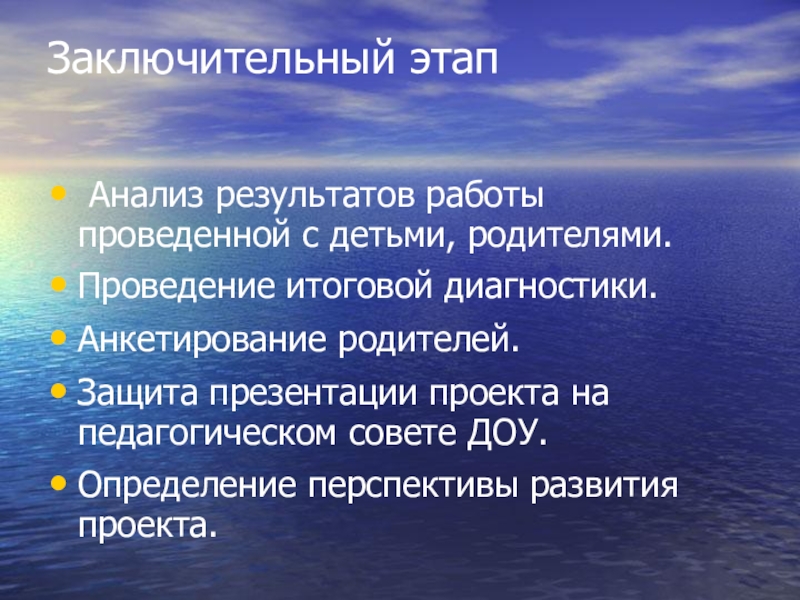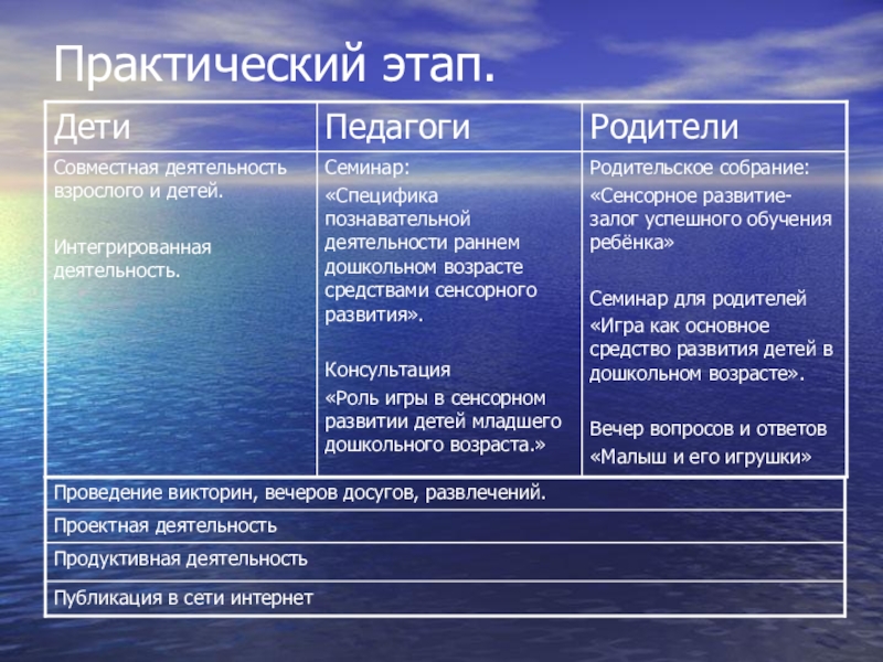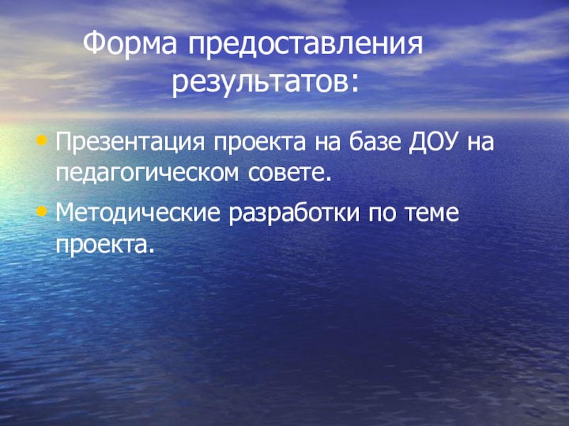 Презентация проекта на базе ДОУ на педагогическом совете.