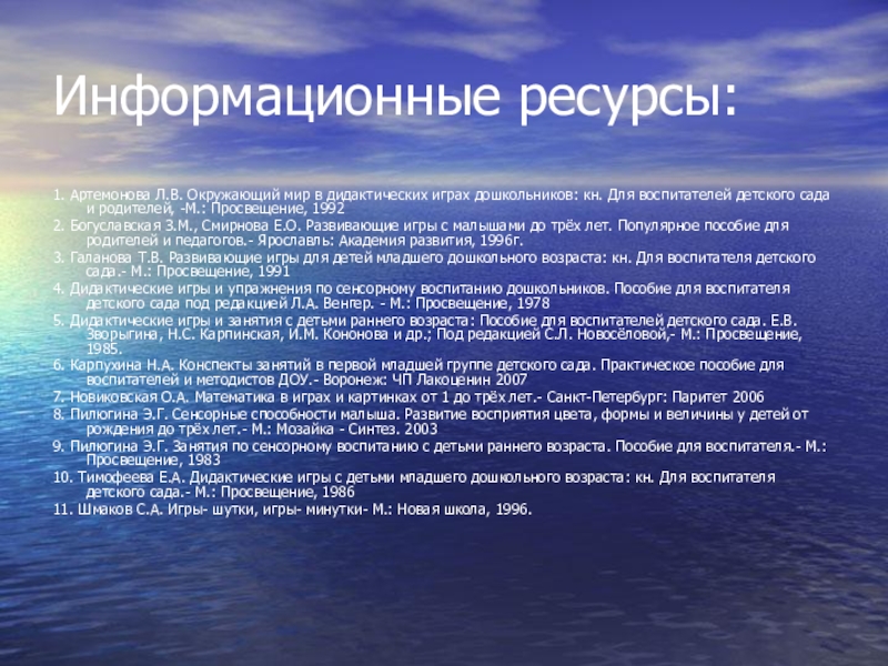 1. Артемонова Л.В. Окружающий мир в дидактических играх дошкольников: кн.