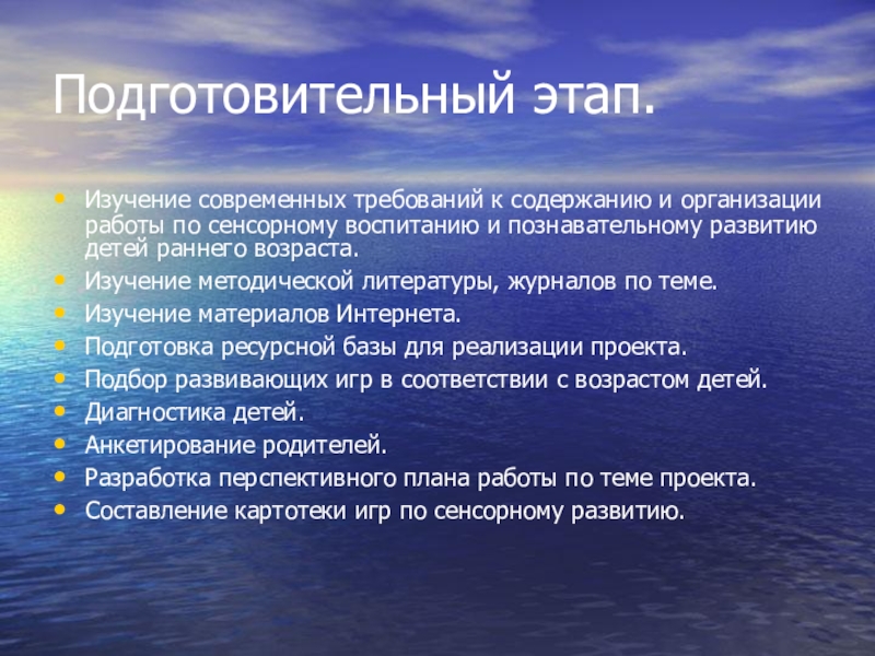 Изучение современных требований к содержанию и организации работы по сенсорному