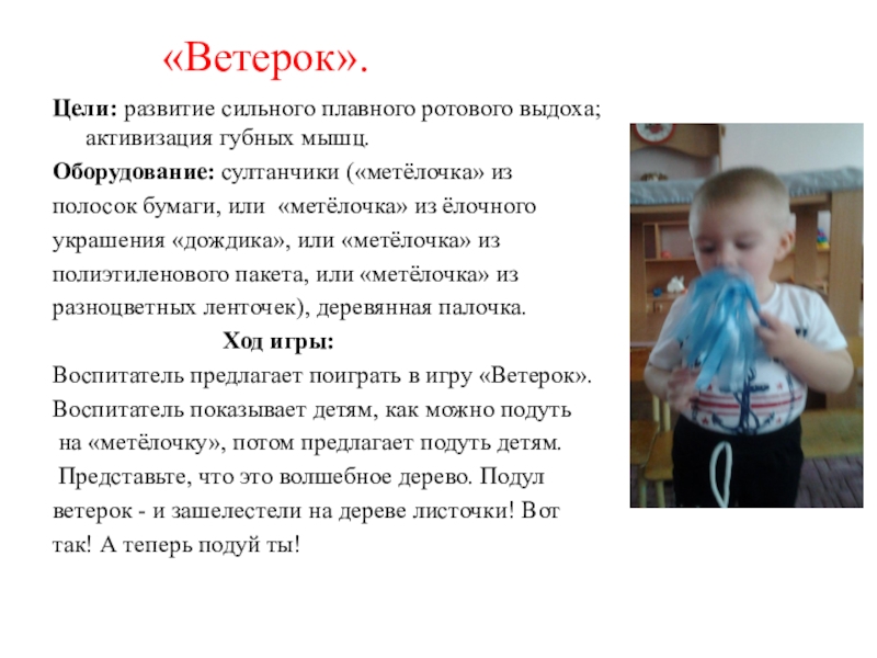 Воспитатель предлагает поиграть в игру «Ветерок».