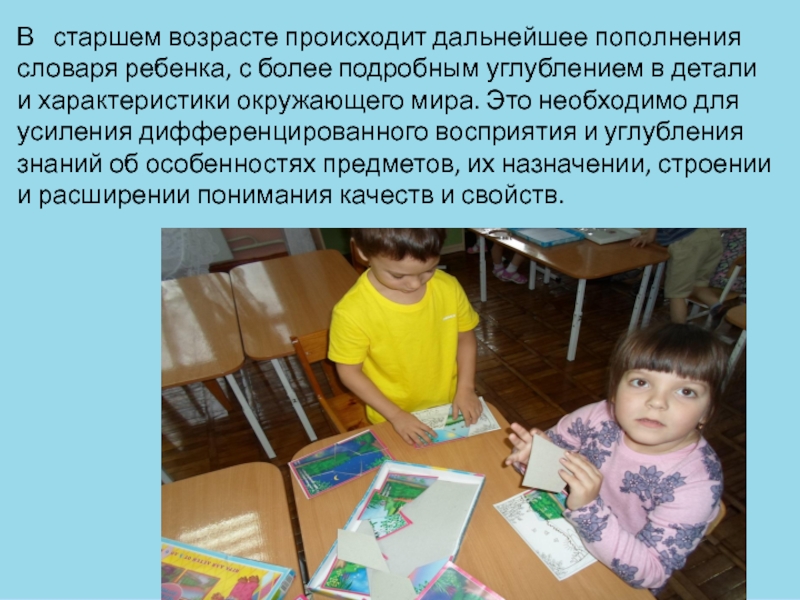 Слайд 11В старшем возрасте происходит дальнейшее пополнения словаря ребенка, с более
