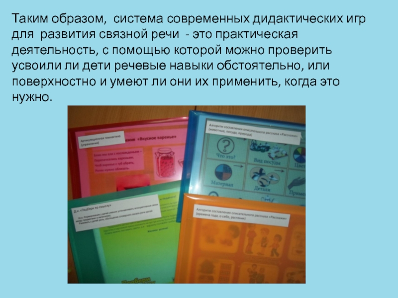 Слайд 13Таким образом, система современных дидактических игр для развития связной речи -