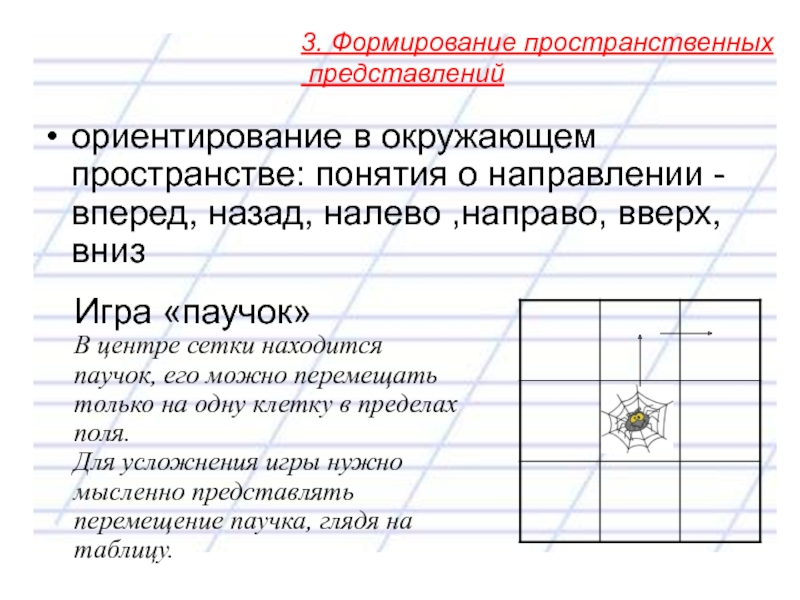 Для усложнения игры нужно мысленно представлять перемещение паучка, глядя на таблицу.