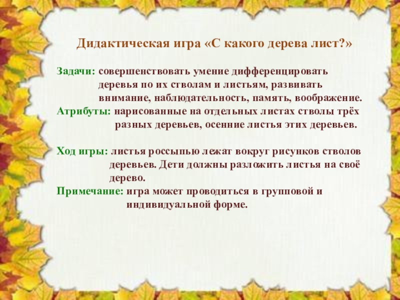 Слайд 8 Дидактическая игра «С какого дерева лист?»