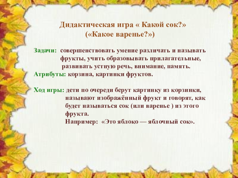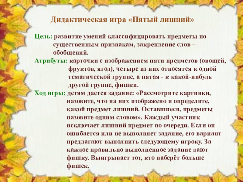 Слайд 2 Дидактическая игра «Осенние приметы»