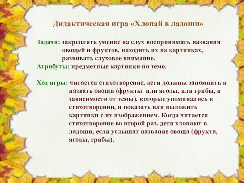 Слайд 11 Дидактическая игра «Хлопай в ладоши»
