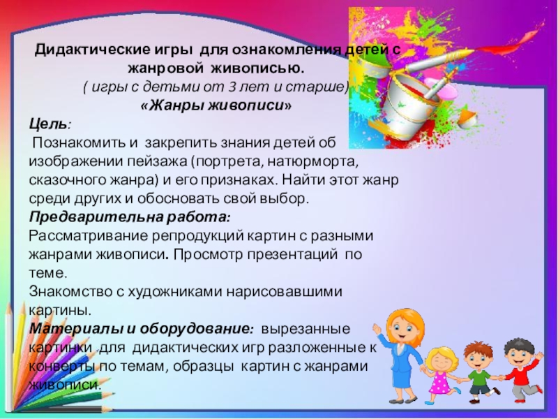 «Дидактические игры для ознакомления детей с жанровой живописью».
