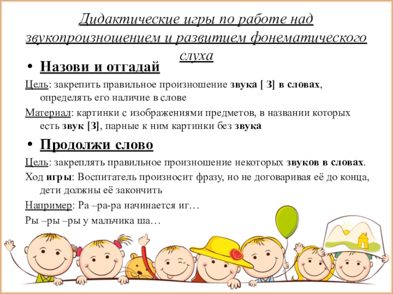Слайд 4Дидактические игры по работе над звукопроизношением и развитием фонематического слуха