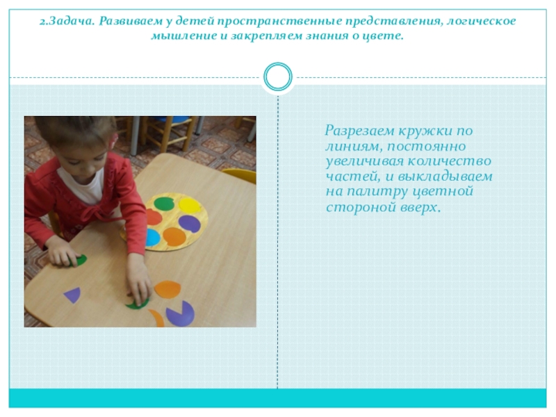 Разрезаем кружки по линиям, постоянно увеличивая количество частей, и выкладываем на палитру цветной стороной вверх.