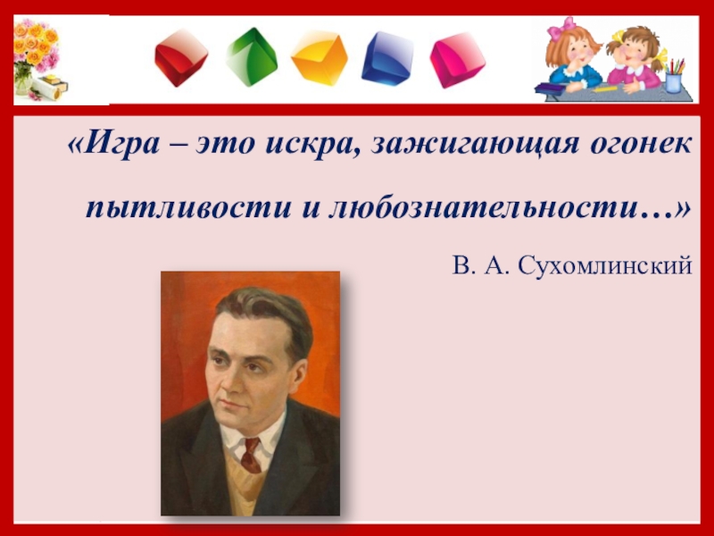 Слайд 2«Игра – это искра, зажигающая огонек пытливости и любознательности…»