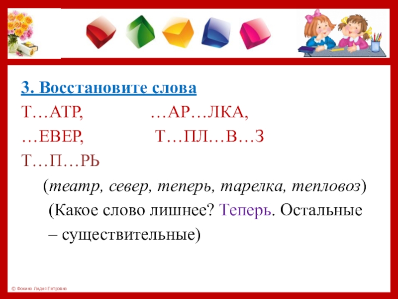 (Какое слово лишнее? Теперь. Остальные – существительные)