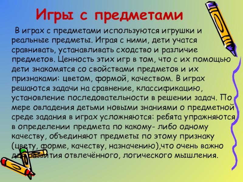 Слайд 7Игры с предметами