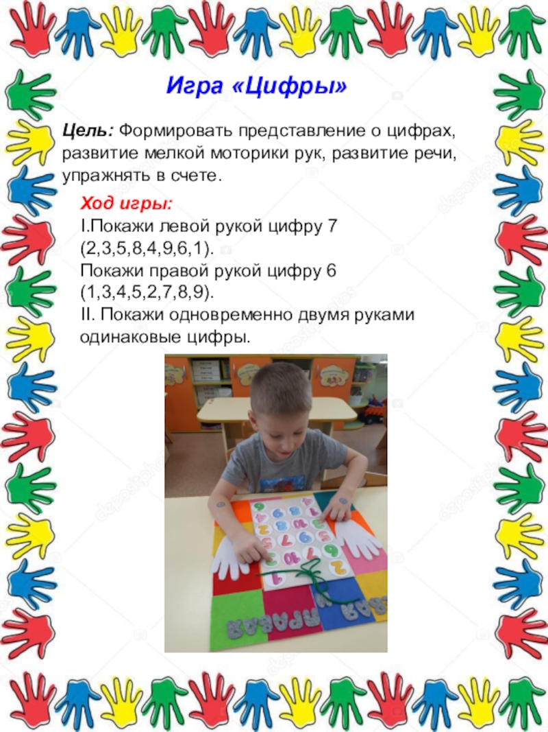 I.Покажи левой рукой цифру 7