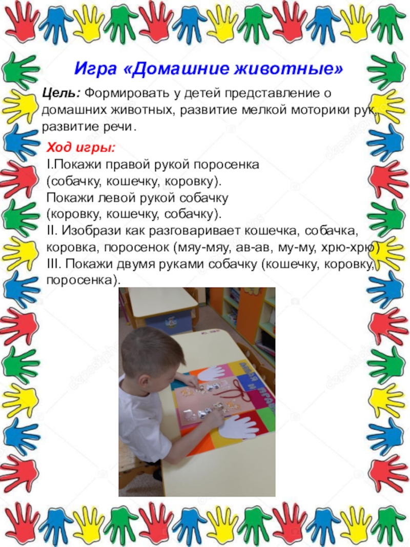 III. Покажи двумя руками собачку (кошечку, коровку,